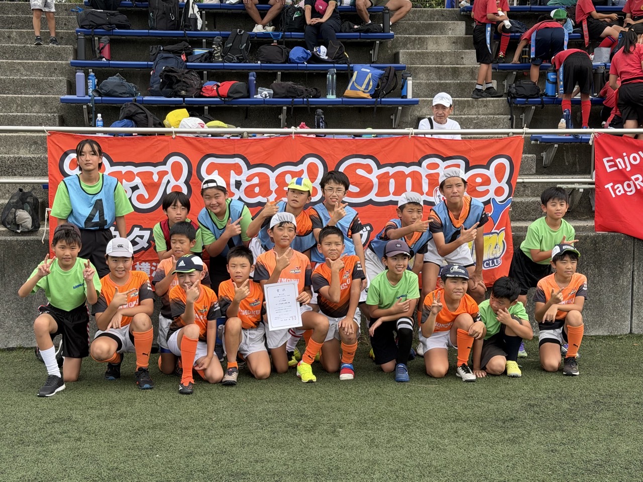 9/23は保土ヶ谷ラグビー場にてタグラグビー県大会が開催され、上郷STCさんとの合同チームで参加しました。